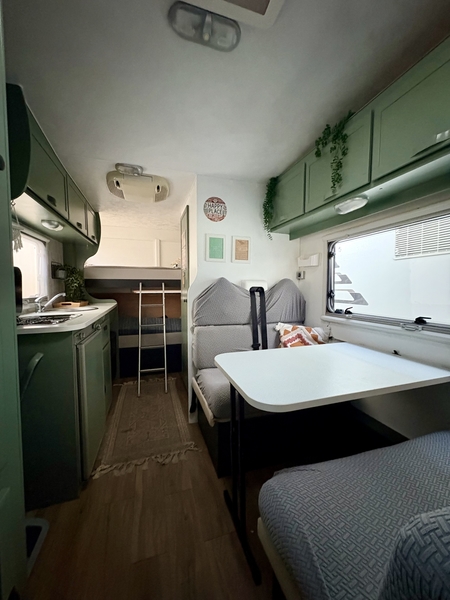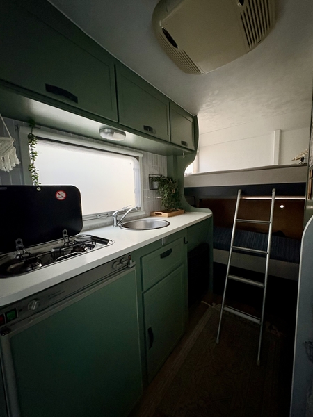Voorzien van: - Keuken met gasfornuis, spoelbak, ruime koelkast, vriesgedeelte - Badkamer met toilet en douche - Fijne zit-/eethoek ( treinzit - om te bouwen tot 2 persoons slaapplaats) - Fietsendrager ( 2 fietsen ) - Luifel ( recent nieuw doek ) - Diverse opbergvakken en kastruimte - horren - airco - achteruitkijk camera - 100 liter watertank - boiler - recent 2 nieuwe accu’s - bear slot - ruime garage ( onder stapelbed )