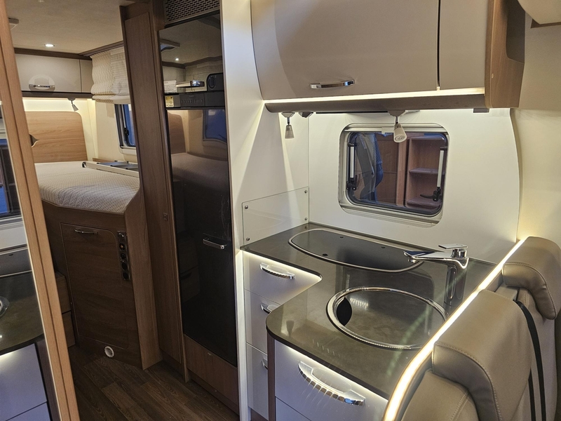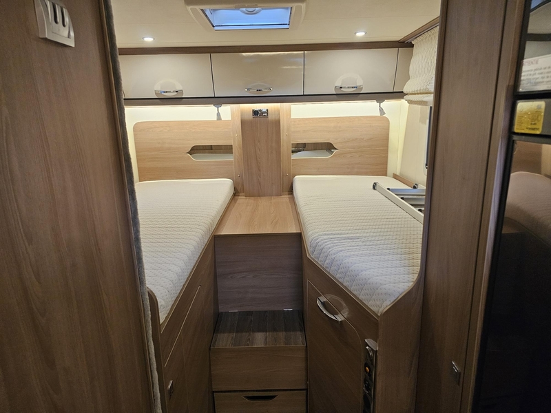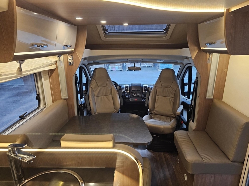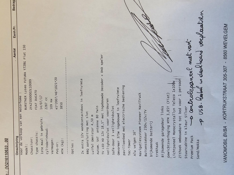 Goed onderhouden mobilhome. Heeft altijd binnen gestaan. Vele opties: - Bouwjaar 2017 - 81.500 Km - Premium pack - Paviljoenbed met elektrische bediening - Buitenstekker, buitendouche, buitengas. - 2 woonbatterijen (vernieuwd in 2025) - zonnepaneel 100 W - vuilwatertank verwarmd door elektrische weerstand - trekhaak - Zithoek ombouwbaar tot bed voor 1 persoon (vandaar 5 slaapplaatsen). - 2 garagedeuren - extra 12 V wanddozen voor laden telefoons. - Luifel 4,5 m - VolAutom. SAT (twin sateliet: 2 aparte kanalen afspeelbaar tergelijkertijd). - TV met ingebouwde decoder + DVD speler - Veiligheidsloten - Nieuwe banden in 2025 - Zetels opnieuw gestoffeerd eind 2025